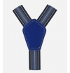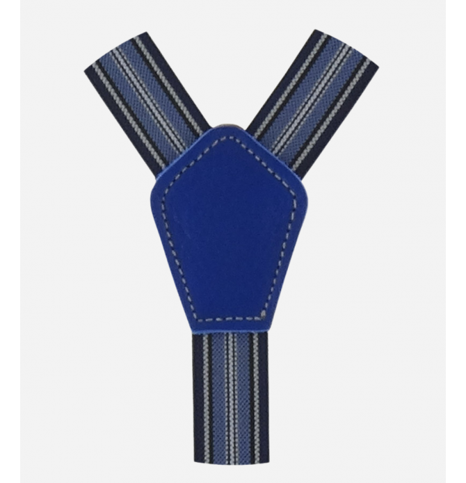 These thin "Y" shaped braces are made entirely by hand in Italy using high quality materials, such as ribbon and natural tanned leather; which we find externally in blue and internally in neutral color, to avoid stains on fabrics. This model is made with the single clip attachment.
