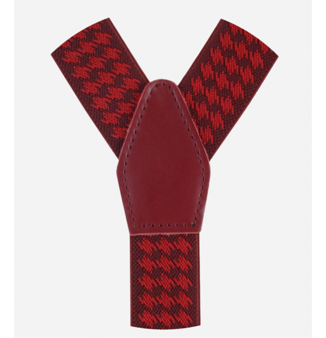These thin "Y" shaped braces are made entirely by hand in Italy using high quality materials, such as ribbon and natural tanned leather; which we find externally in red and internally in neutral color, to avoid stains on fabrics. This model is made with the single clip attachment.